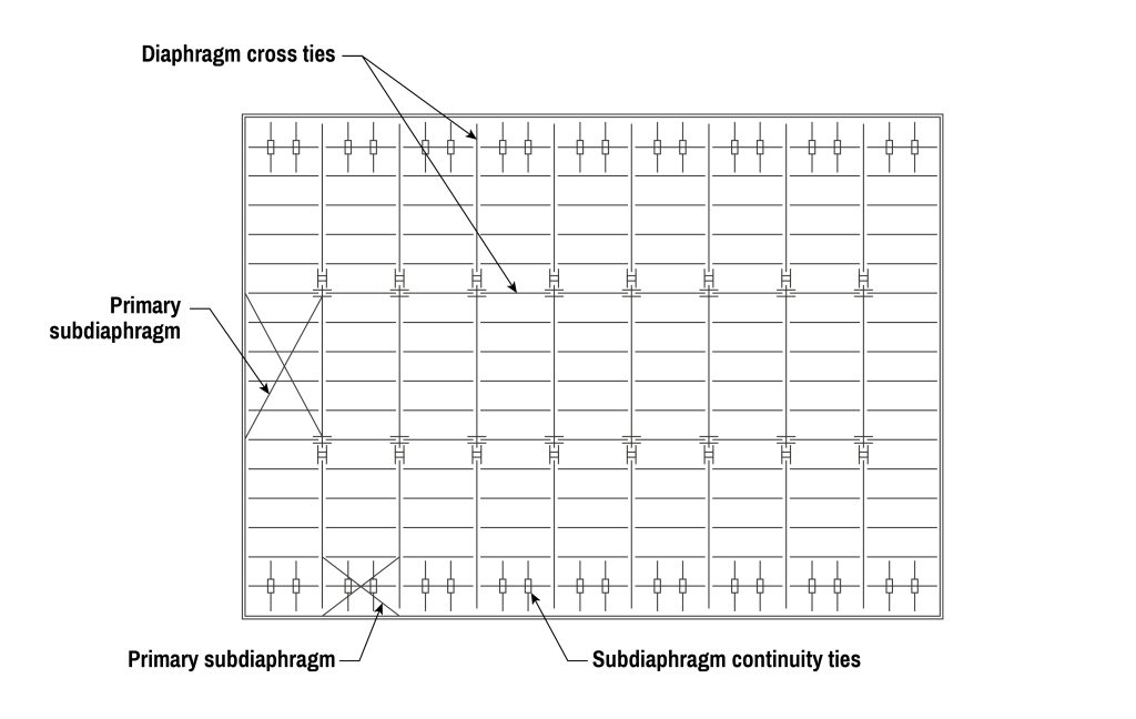 - Subdiaphragms (a portion of the roof diaphragm adjacent to the wall to which the struts transfer wall anchor forces).