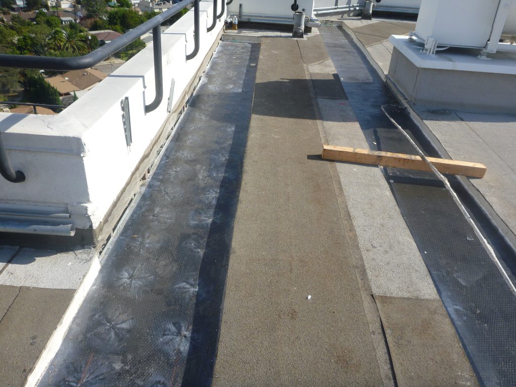 - Strengthening of roof diaphragms to improve the overall building performance. This typically involves adding nailing from the plywood to the roof framing members below and is normally limited to a small portion of the entire roof. In extreme cases, it can involve adding a second layer of plywood below the framing at locations where additional strength is needed (near concrete walls). To be cost-effective, this strengthening is best achieved in combination with a reroofing project, as roofing must be removed to add nailing. It may be appropriate to complete the rest of the retrofit, but wait until reroofing is scheduled to re-nail the diaphragm. Tilt-up retrofits are usually relatively economical compared to retrofits of other structures, but adding the cost of a new roof can double the cost.