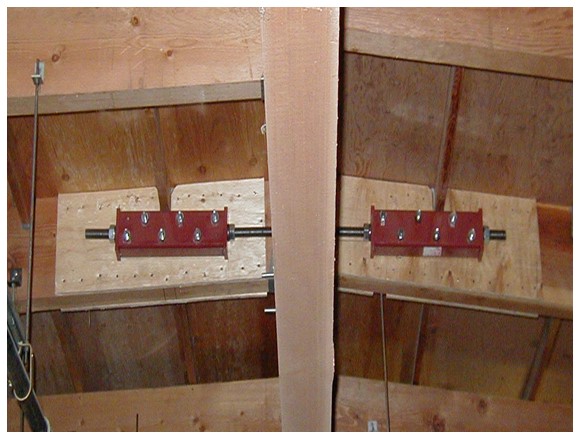 - Wall anchors (steel hardware and anchor rods connecting the walls to the roof framing, referred to as struts).