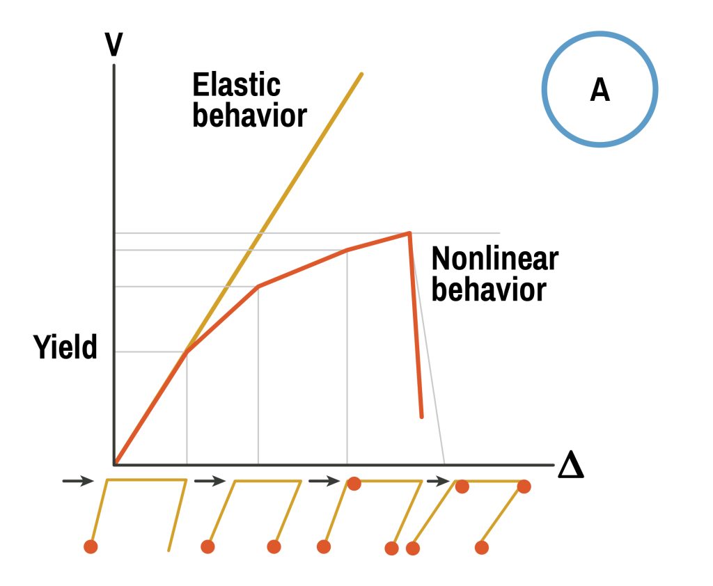 Comparison of non-ductile (A) with ductile (B) structural behavior.