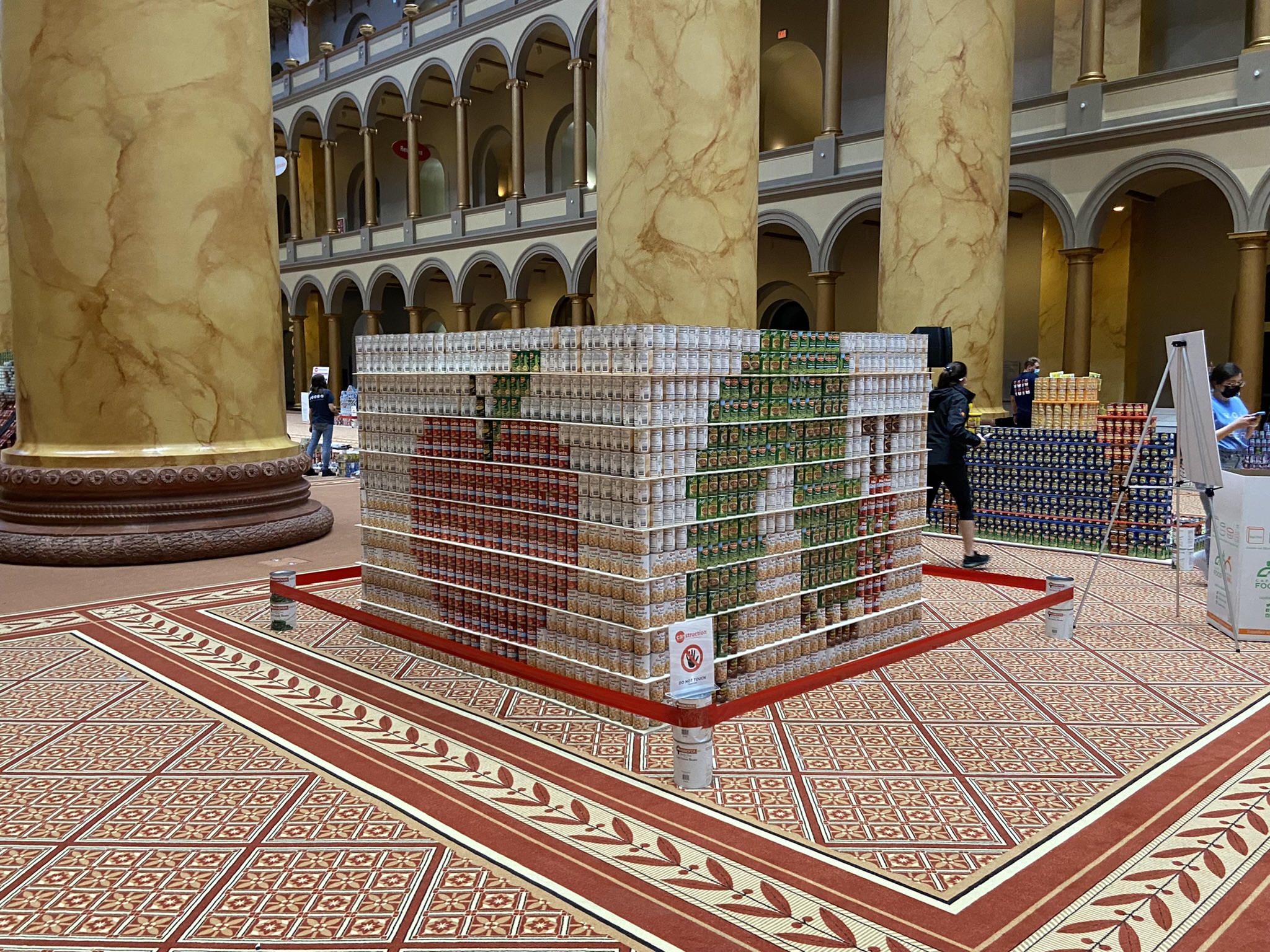 The Washington, DC, team constructed “The Very Hungry CANerpillar,” at the National Building Museum. The sculpture, which will provide more than 3,000 meals, was made from 3,458 cans and won the competition’s “Most Artistic” category. These cans will be donated to the Capitol Area Food Bank.