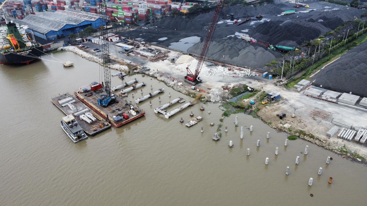 - A 24 m long by 19 m wide, pile-supported marginal wharf connected to land via two pile-supported access trestles and divided in two segments to address boundaries imposed by concession constraints