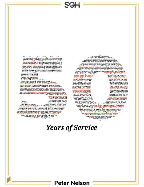 At the center of the campaign were two short films honoring the fifty-year careers of Peter Nelson and Mehdi Zarghamee. Knowing it was meaningful to the SGH community, we wished to pay tribute to these incredible accomplishments. Produced by our Marketing team, the videos feature reflections from colleagues, mentees, and alumni, highlighting not just longevity, but the transfer of knowledge, professional curiosity, friendship, and mentorship that define SGH’s practice. Unveiled at a ceremony at our headquarters, with Peter and Mehdi’s family present, the films created a shared, joyful moment of recognition and connection.